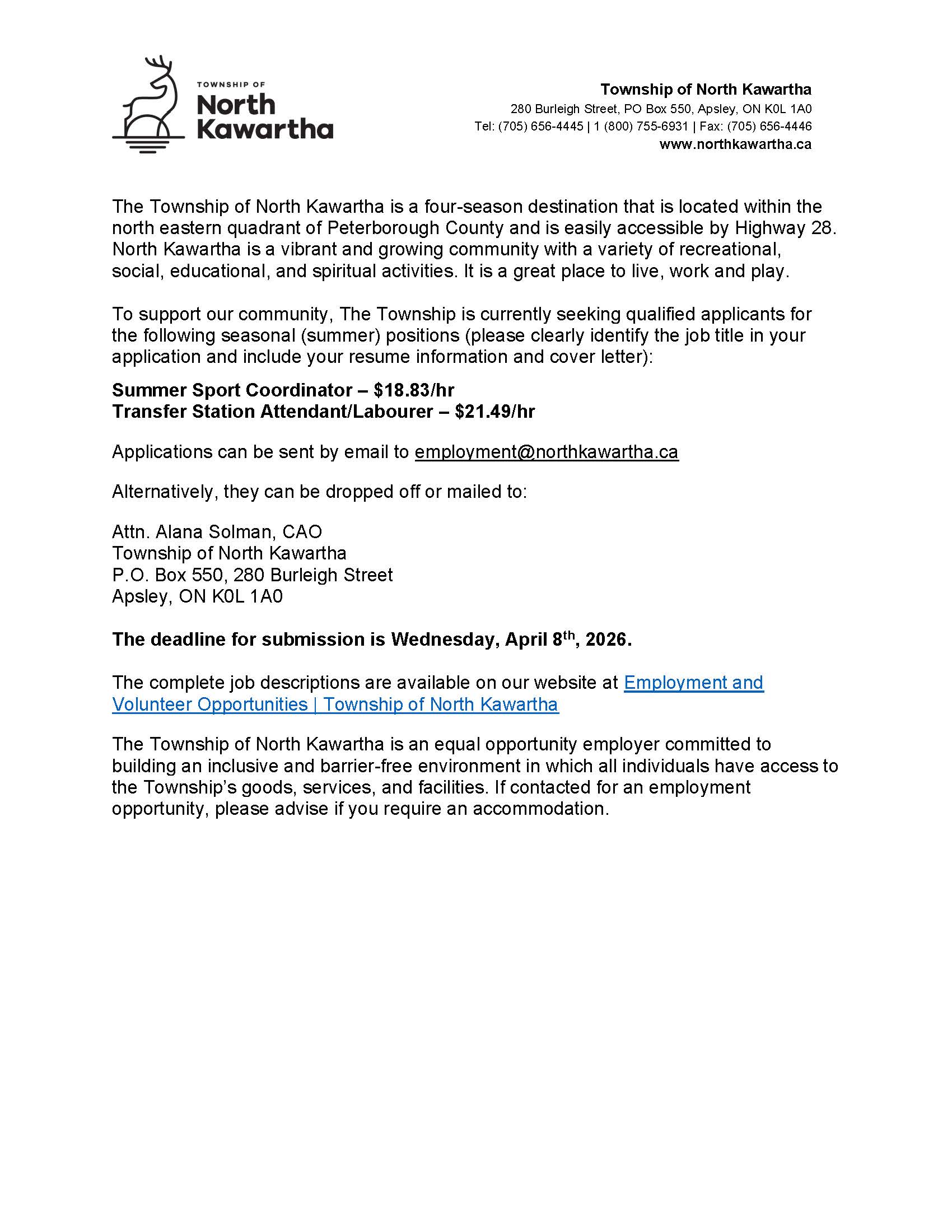 Seasonal Summer Positions Seasonal Apsley Posted 7 hours ago Company Details Township of North Kawartha Apply Now × Apply Now Job Title: Job ID: Job URL: Your name (required) Your email (required) Your message Attach your resume (PDF, Max. 2MB) Δ